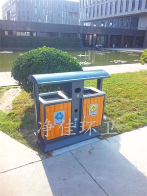 戶(hù)外鋼木分類(lèi)垃圾桶,外形尺寸:1040/400/1000mm,整體板材采用實(shí)際厚度1.0鍍鋅鋼板制作而成,兩側(cè)立柱為1.5厚鍍鋅鋼管,外表做高溫噴塑處理使其外表色澤鮮艷美觀(guān)、防腐蝕能力更強(qiáng)等優(yōu)點(diǎn)。木材采用進(jìn)口樟子松經(jīng)過(guò)防腐、打磨、噴漆處理,外表美觀(guān)光滑,木材與桶體